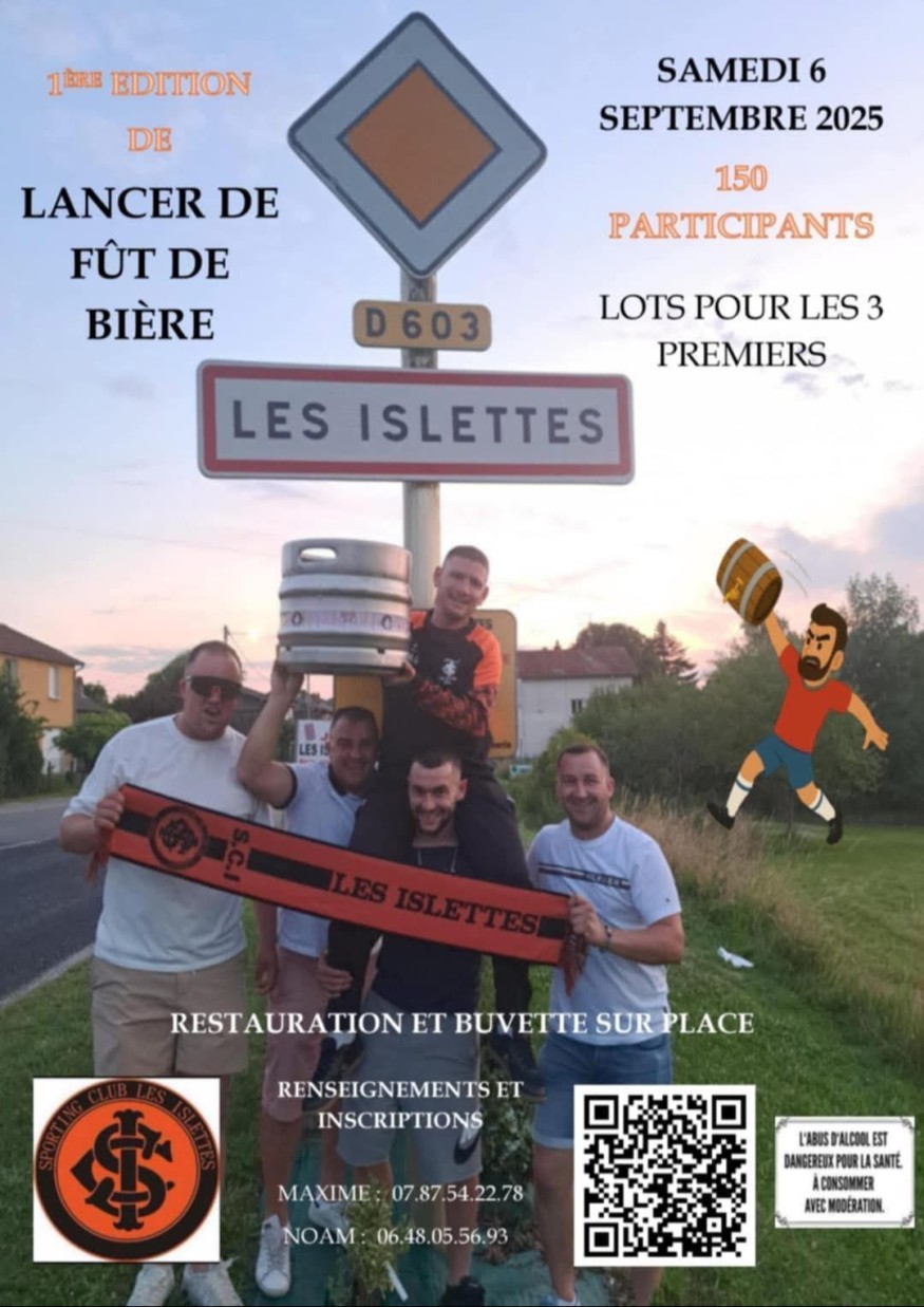 Le Sporting Club des Islettes organise le 6 septembre un concours de lancer de fûts de bière. Un rendez-vous festif et sportif à la fois, destiné à animer la commune et soutenir le club.