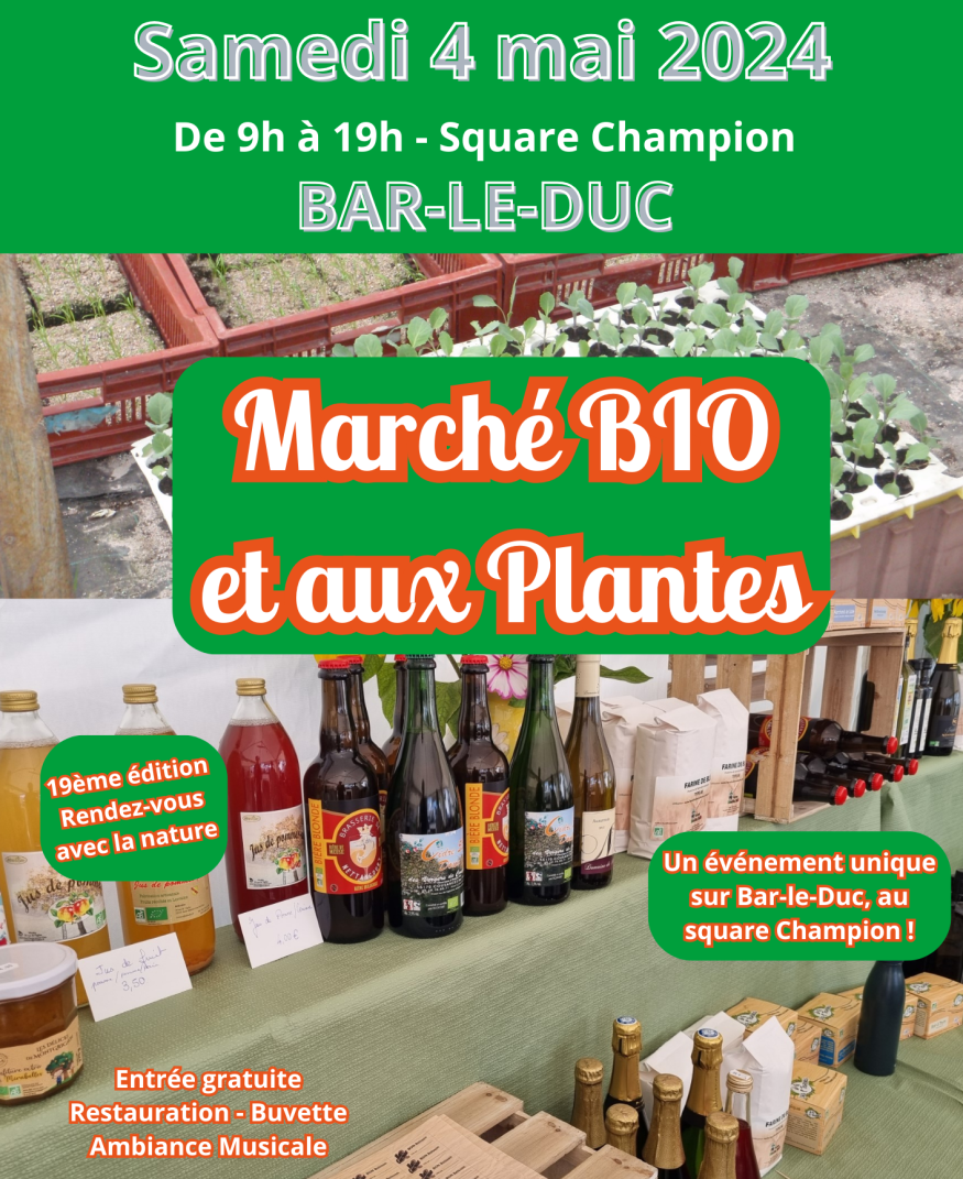 Interview de François MARCHAND et Angélique LIENARD, membres du Groupement des Agriculteurs Bio de la Meuse dans le cadre du « Marché bio et aux plantes » qui se déroulera samedi 4 mai square Couchot, ainsi que dans le cadre de l’opération petit-déjeuner et repas bio qui se tiendra dans les écoles de Bar Le Duc.